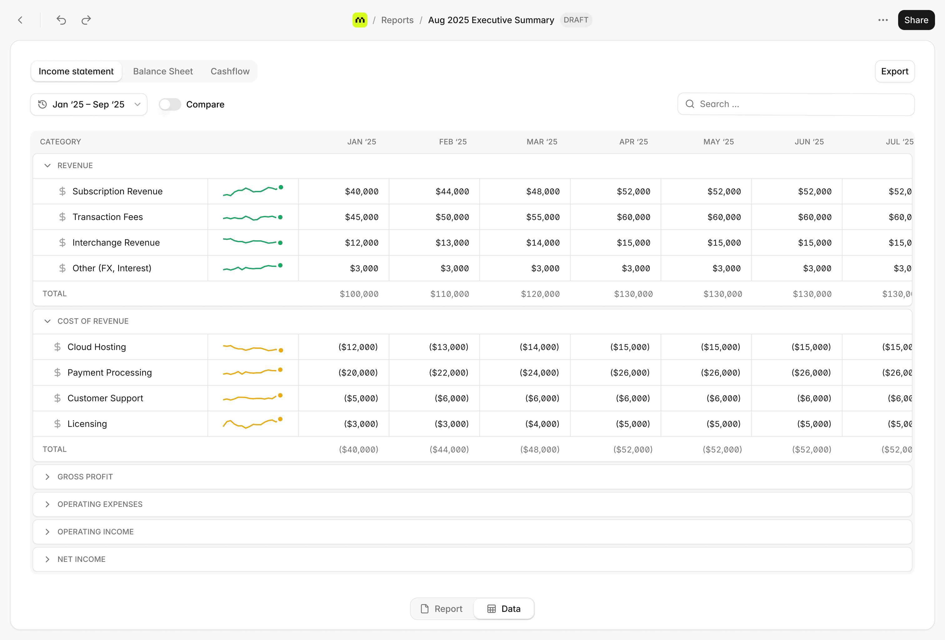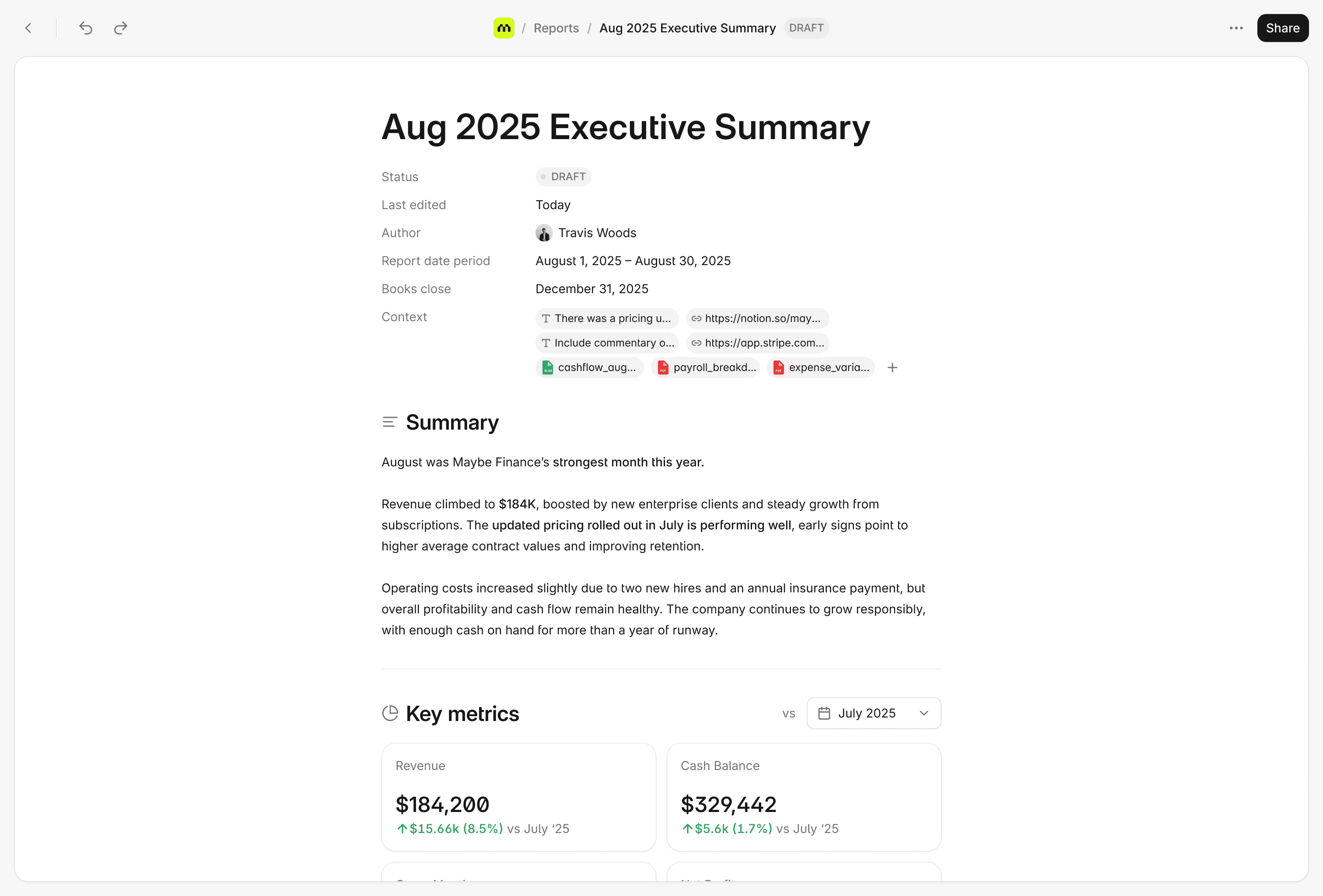 Yet every month, you’re stuck fixing exports, chasing context, and rewriting reports for people who don’t speak finance.